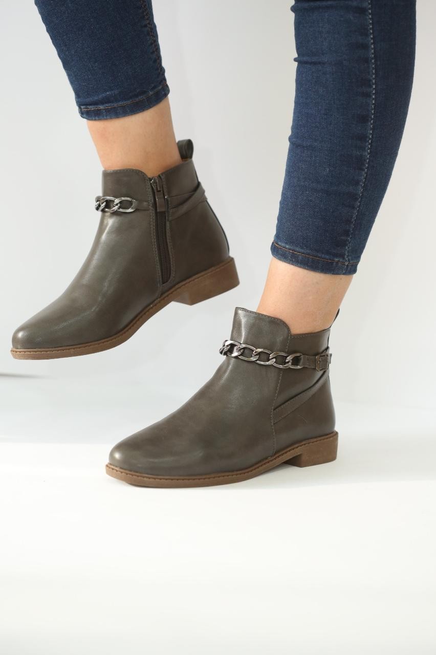 حذاء نسائي بطول الكاحل  مصنوع من الجلد بإكسسوار باللون الفضي بدون اربطة مقاومة للطقس البارد