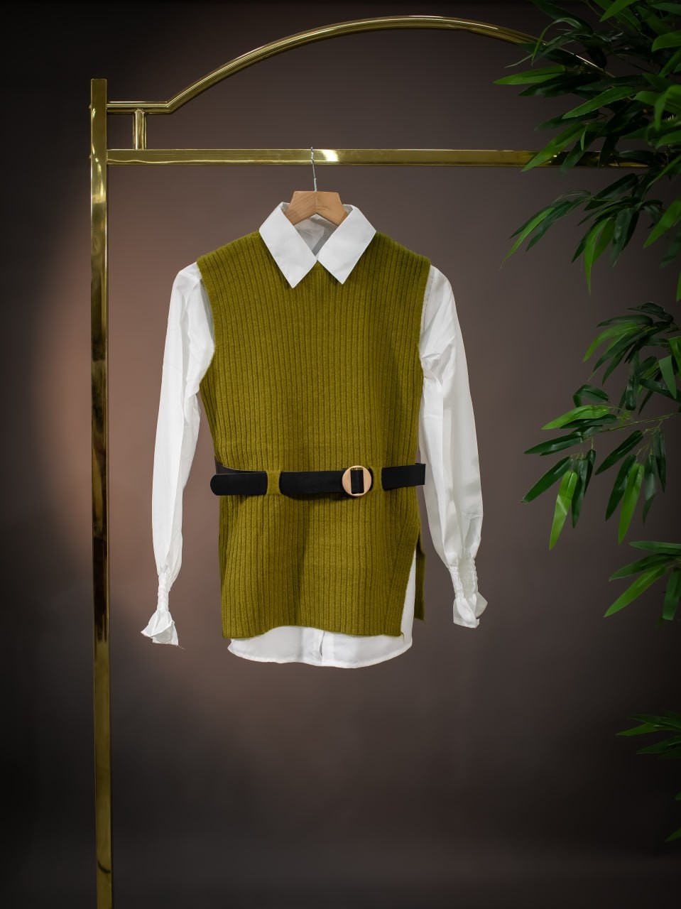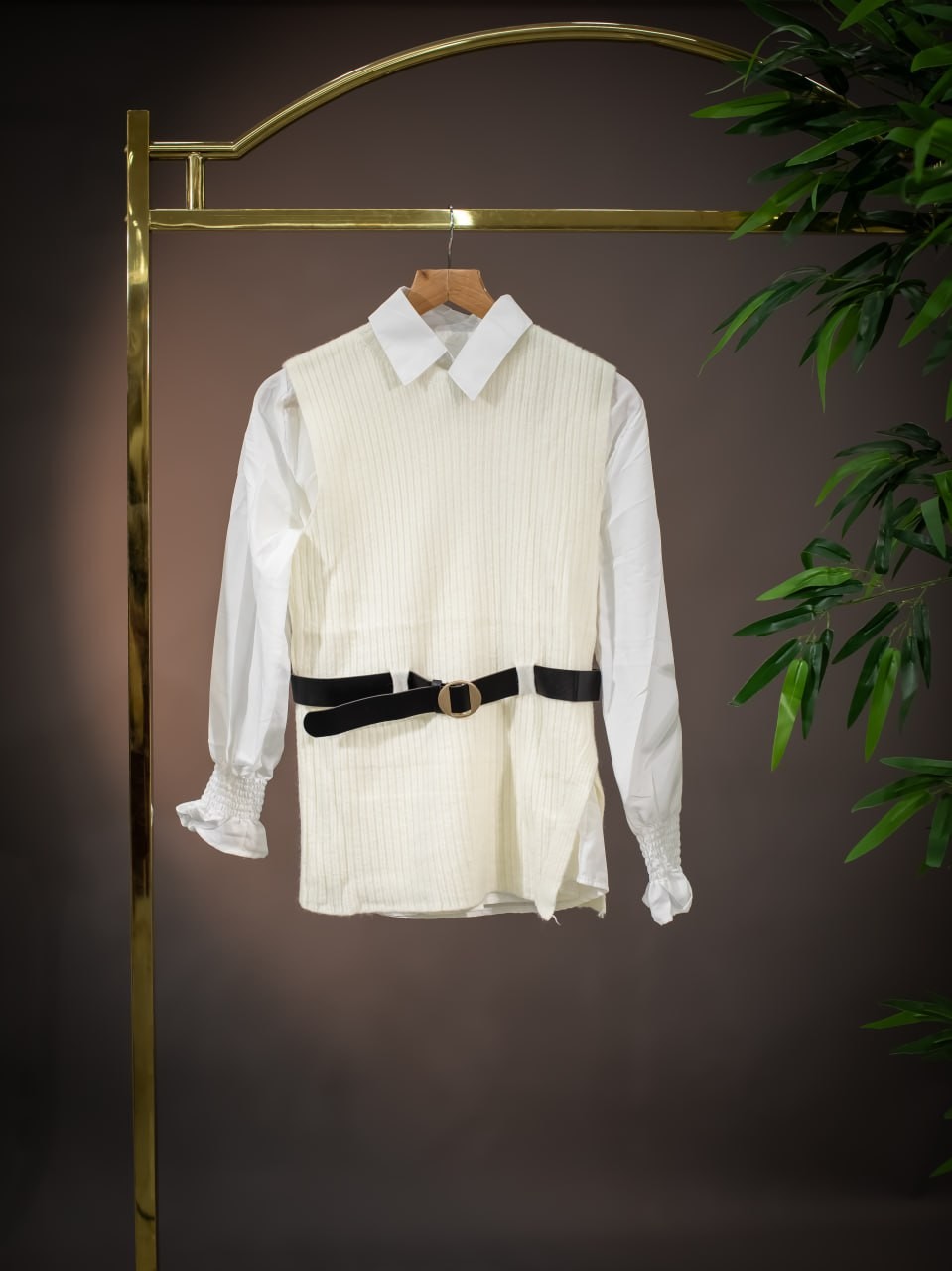 قميص ابيض مع فيست وحزام
