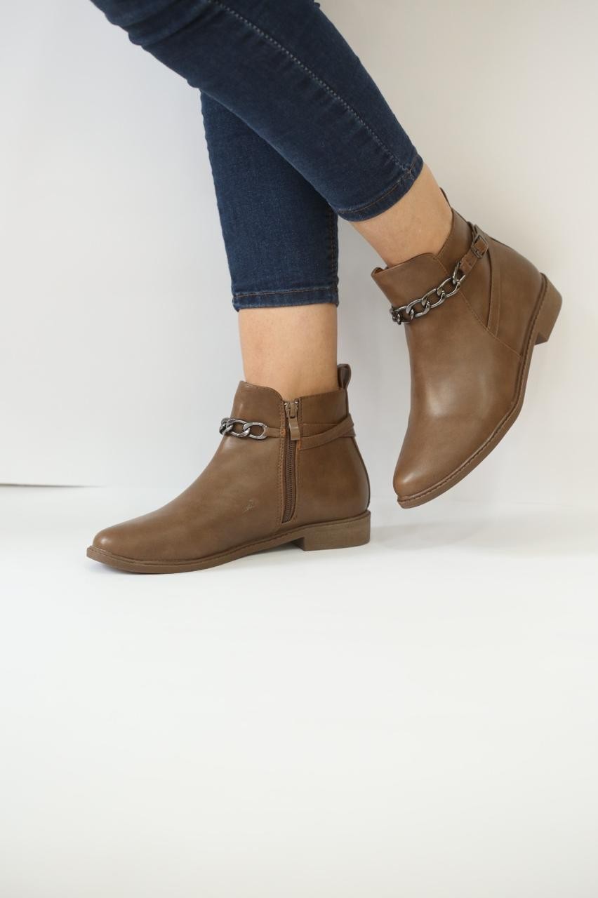 حذاء نسائي بطول الكاحل  مصنوع من الجلد بإكسسوار باللون الفضي بدون اربطة مقاومة للطقس البارد