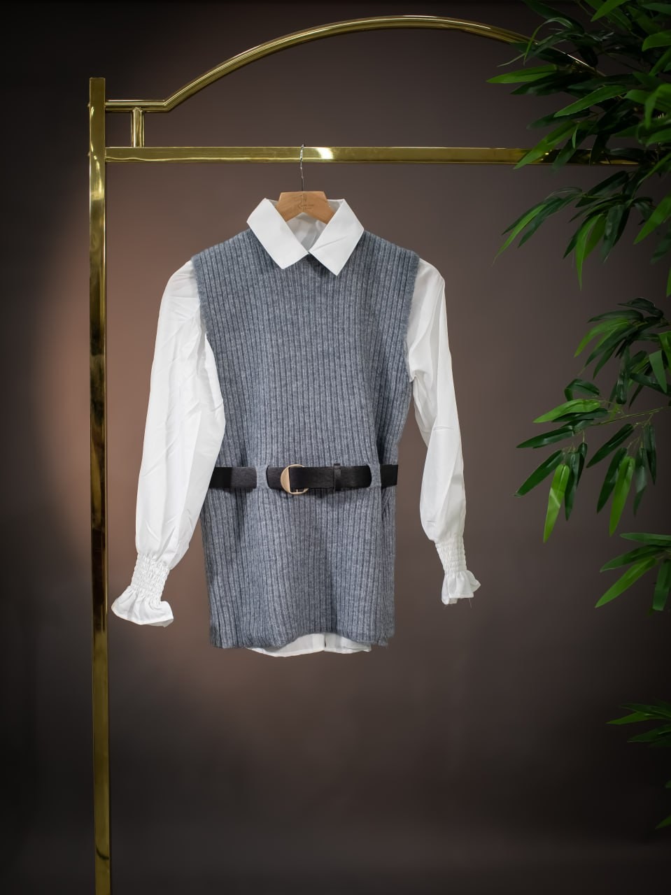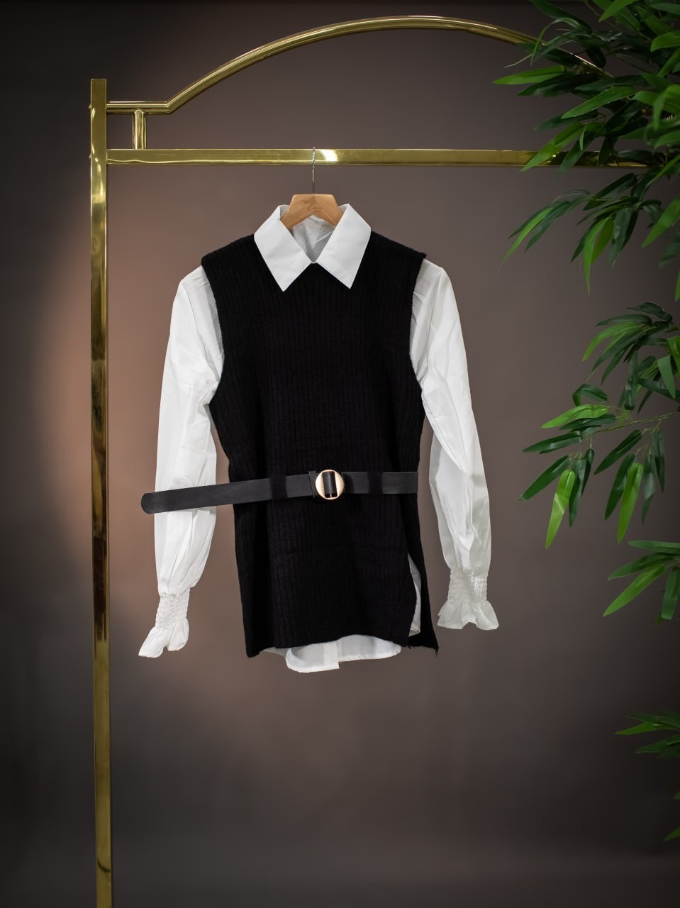 قميص ابيض مع فيست وحزام
